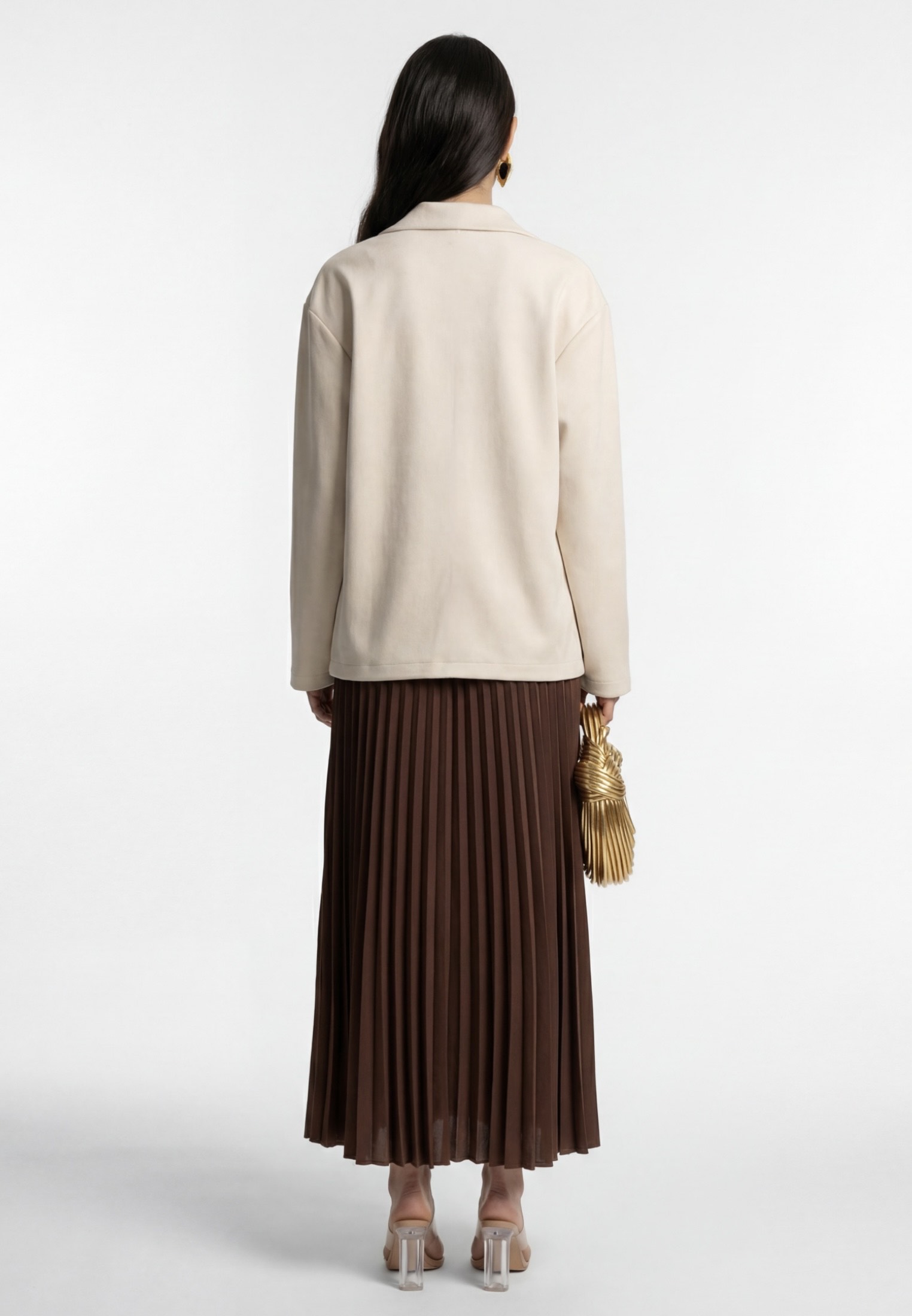 Благородная бархатистая фактура экозамши подчёркивает мягкость силуэта и делает модель универсальной для повседневных и более собранных образов.