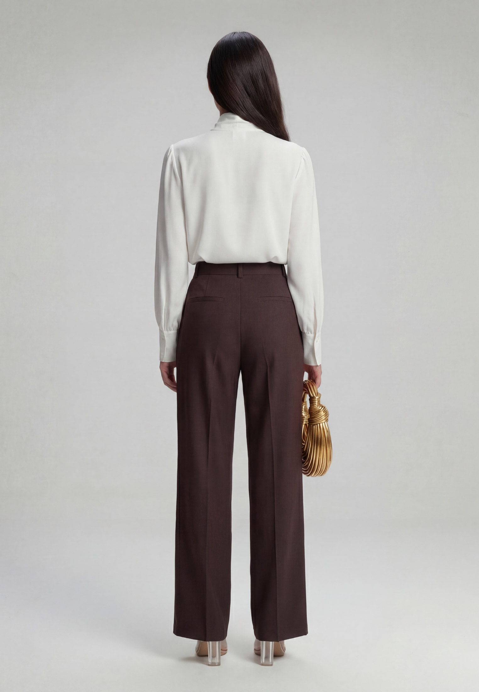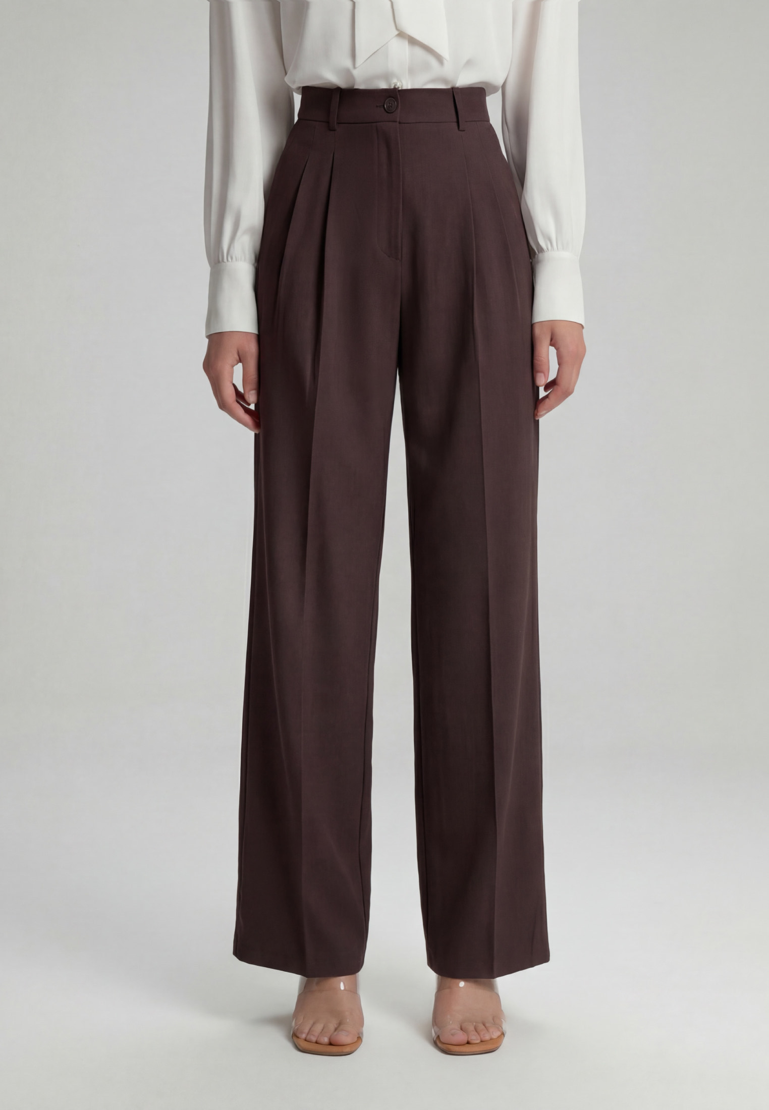 Брюки классического кроя в шоколадном оттенке с высокой посадкой на талии.