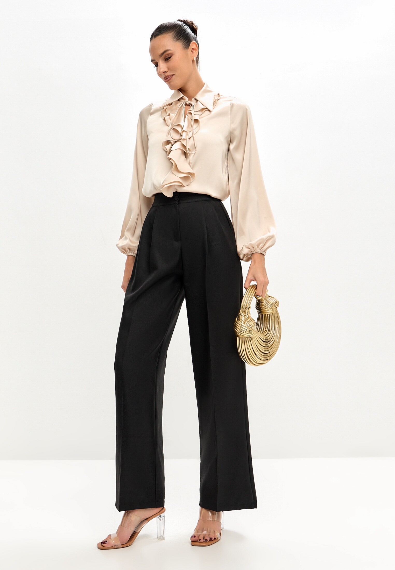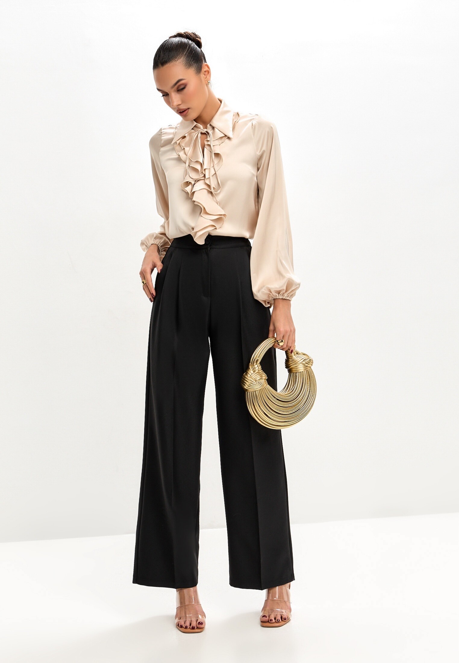 Брюки-палаццо обеспечивают свободу движений и комфорт. Модель характеризуется следующими параметрами: